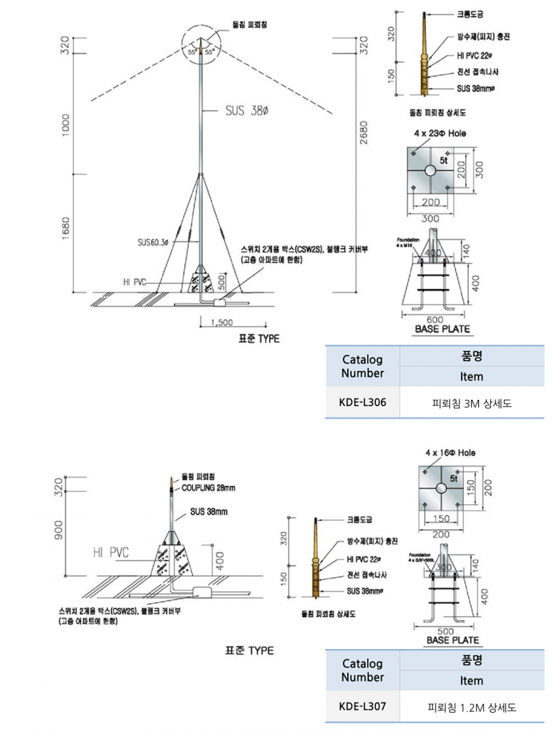 금속기와용 보조피뢰침 > 피뢰설비
